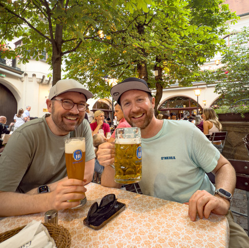 After days in nature, Munich felt gritty at first—but it grew on us fast. Beer gardens buzzing with laughter, music floating through the English Garden, surfers riding a river that very clearly warned “Do Not Swim—Death.” Somehow, it all worked.