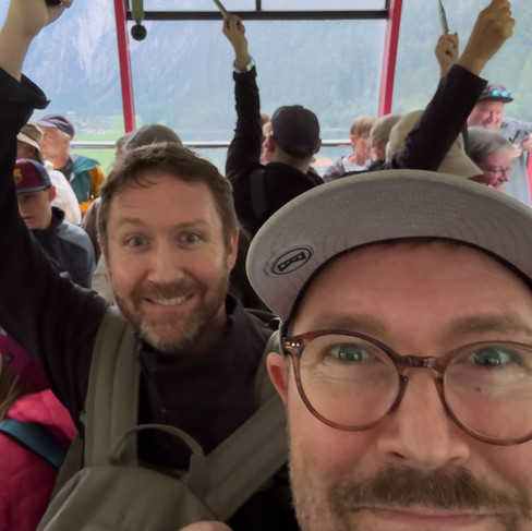 Mürren, perched impossibly high in the Alps, took our breath away—literally and figuratively. Clear skies, cowbells echoing through valleys, and views that felt almost fake in their beauty. On our free day we rode gondolas, walked glass platforms clinging to mountainsides, and hiked for hours along the North Face trail. We picnicked on our balcony with grocery‑store bread, local cheese and beer, feeling like we had cracked the code to happiness.